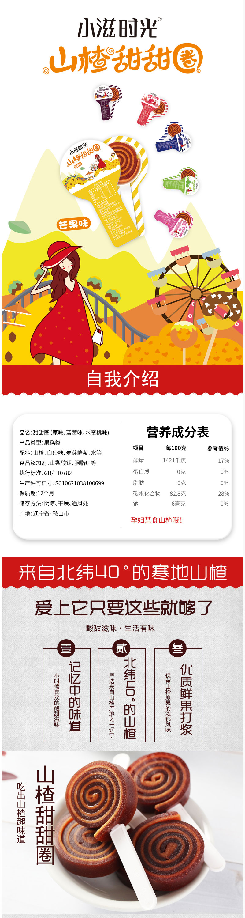 廣盛旗艦店小滋時(shí)光甜甜圈山楂卷果丹皮混合原果味棒棒糖零食果脯